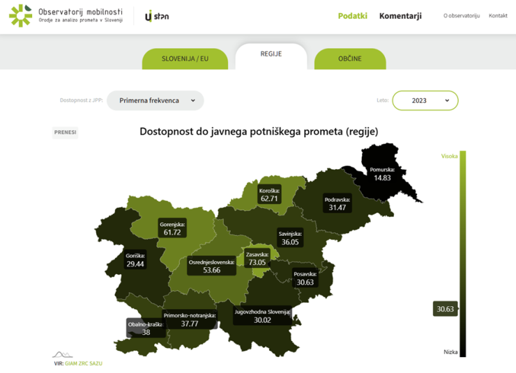 Primer prikaza podatkov na Observatoriju mobilnosti: